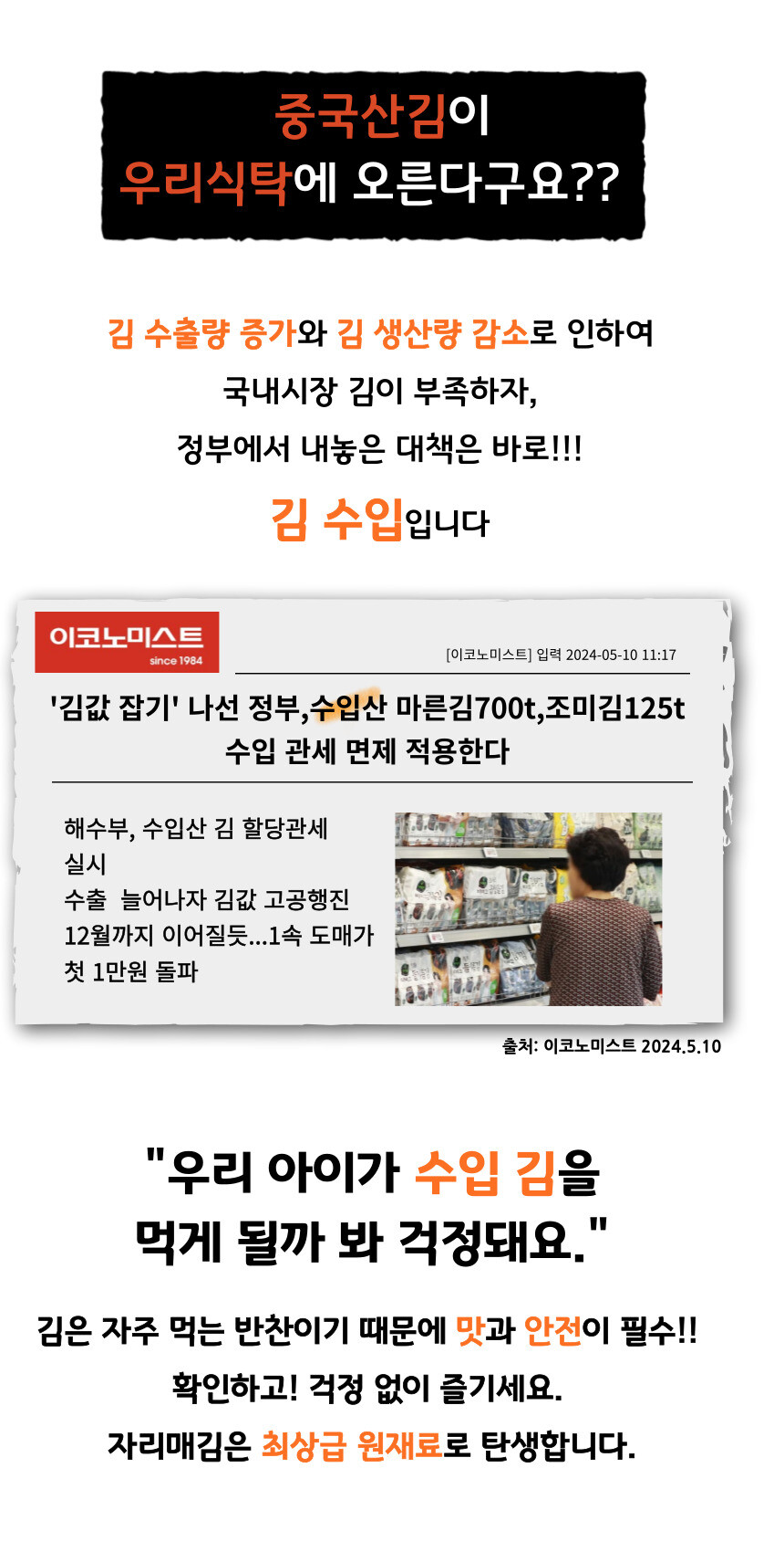 자리매김 선물세트는 기본 조미김외에